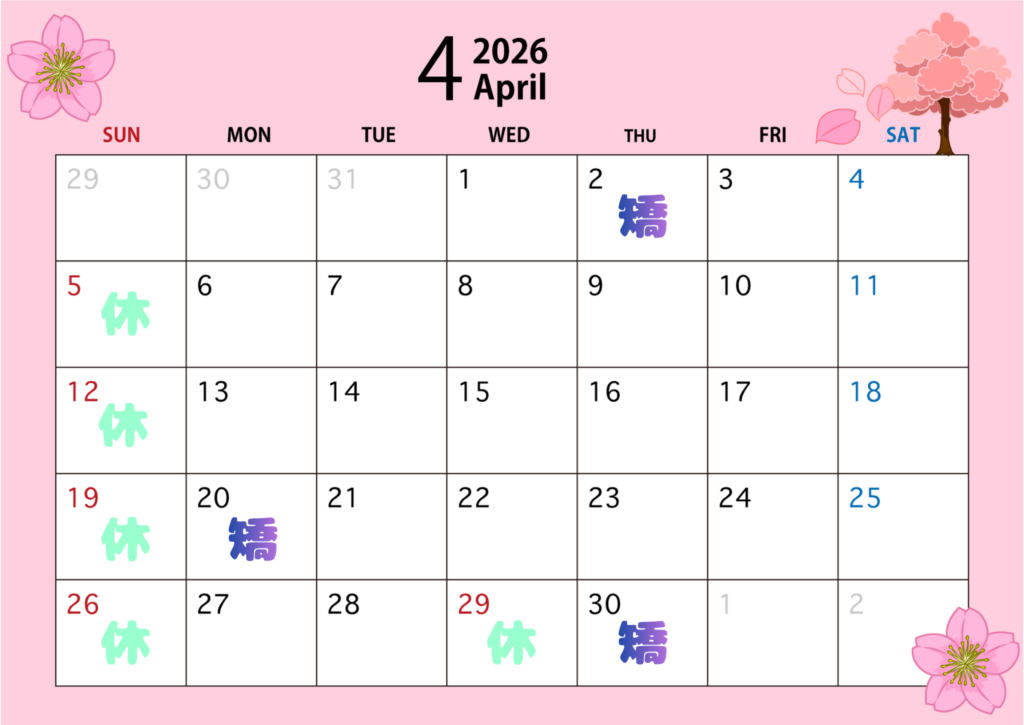4月の休診日と矯正日のお知らせ
