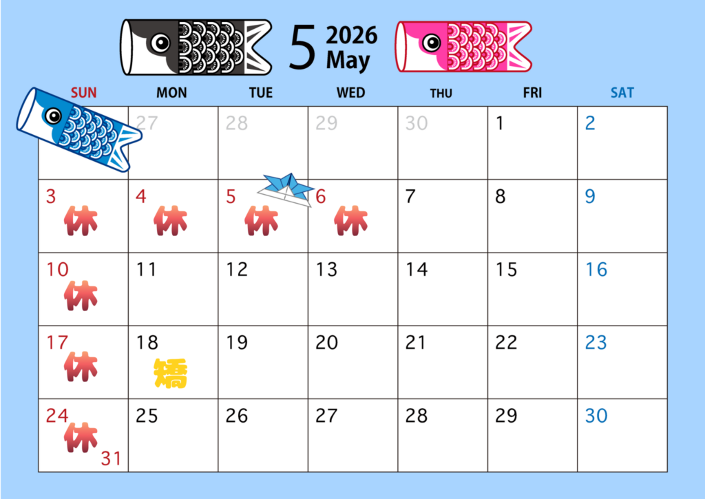 | 月 | 火 | 水 | 木 | 金 | 土 | 日/祝 | |